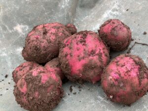 こんにちは、大樹地農園のみかです。 . 今年の冬はじゃがいも作りに挑戦! 試し掘りをしましたが、やっぱり新じゃがは美味しいですね。 . 「アンデスレッド」 . 春収穫のじゃがいもは、水分が抜けてしわしわとなっておりますが、味が濃厚で、こちらも美味しいですよ(^^)