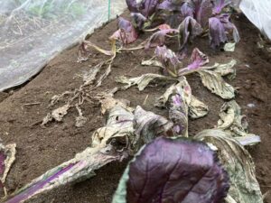 紫白菜が、虫か、はたまた気候変動か、やられてしまいました(TДT)